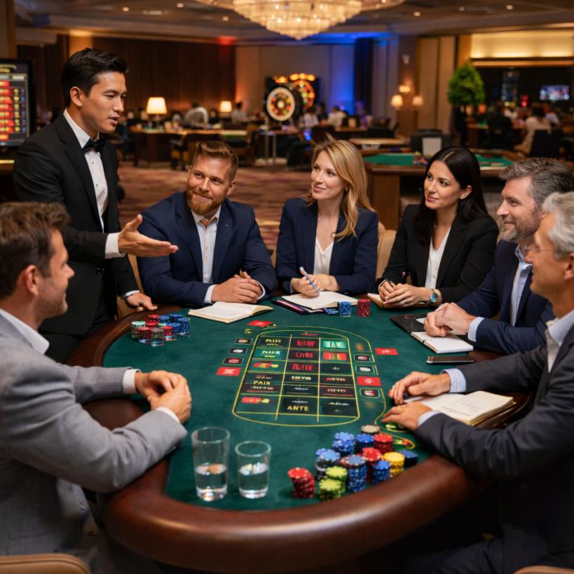 Ostateczna integracja zespołu na miejscu. Zabierz swój zespół do naszej fizycznej lokalizacji na wydarzenie w stylu kasyna na żywo, zaprojektowane tak, aby wspierać relacje poprzez interaktywną rozrywkę twarzą w twarz.